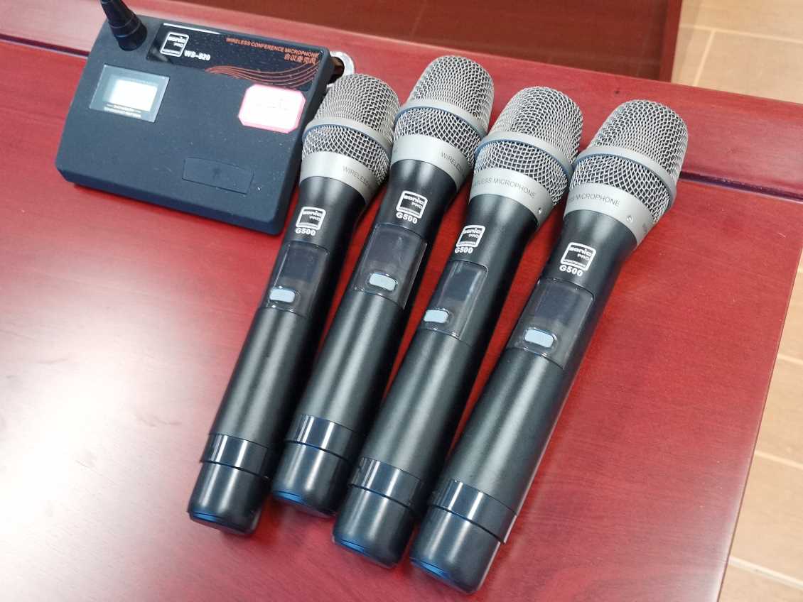 我们配置了四套八只无线鹅颈浙江话筒,为了满足流动发言的使用需求,配置了两套一拖二的无线手持话筒。满足各类会议报告的使用需求。