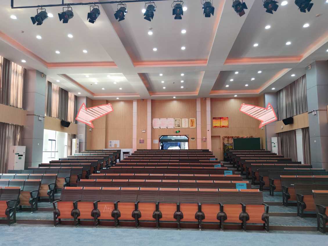 该报告厅需要满足日常的会议,报告、演讲、授课、学术交流、兼顾文艺演出的使用需求,以此为前提我们的技术工程师在充分了解了项目需求、场合面积和施工条件后设计了一整套专业完善的音响系统解决方案。