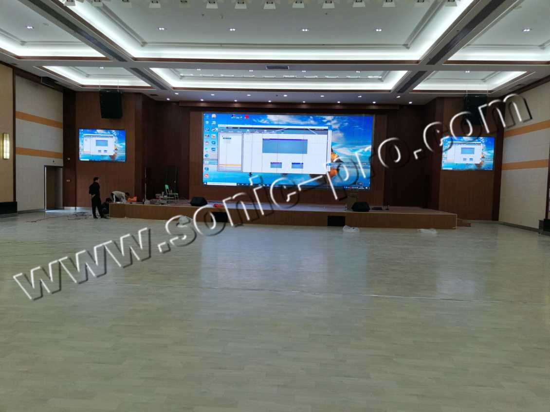 报告厅使用特点是,面积较大,需要实现远距离,大声压的扩声,因此我们配置了左右主扩声浙江音箱,一边采用四只线性阵列音箱,高品质的喇叭单元配置,提供高音顺滑,中音通透,低音饱满的扩声。