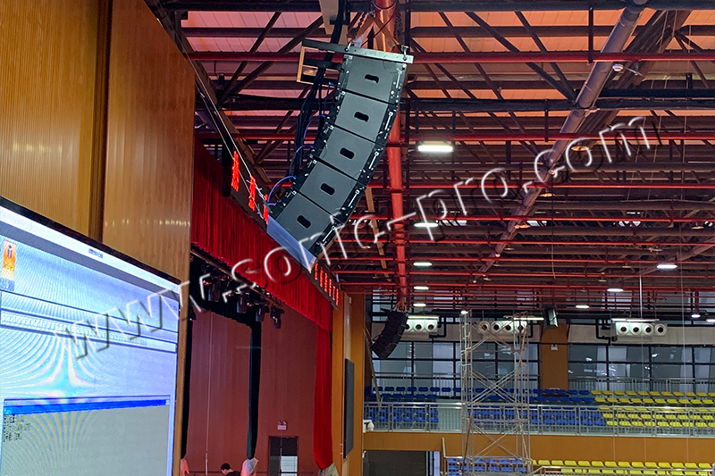 此次对于湖南省长沙市望城区第二中学体育馆在音频扩声系统的设计上,以满足播发各类音乐、广播和比赛语言扩声的使用要求为主,再是承接一些文艺活动,在使用功能上除保证语言清晰度要高及音质柔和、声压覆盖要均匀外,还要求设备功率要大且留有余量,因此我们在方案设计及设备选型上以满足使用的稳定性和可靠性为主。