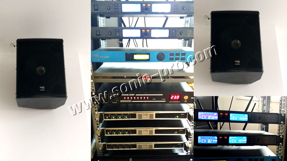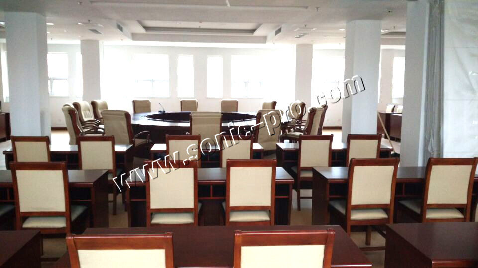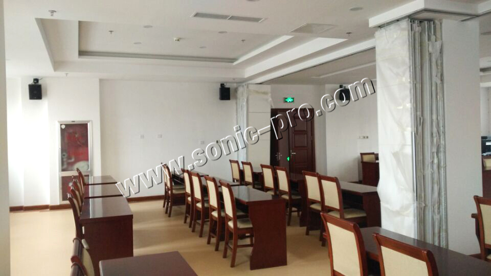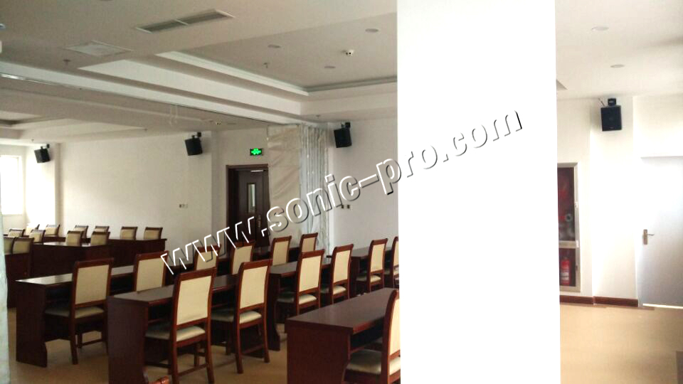 单位内部的数字会议室扩声系统采用德国SONIC-PRO音响产品,为满足会议室独特的扩声要求,浙江音箱采用同轴点声源的TZ系列音箱12只,