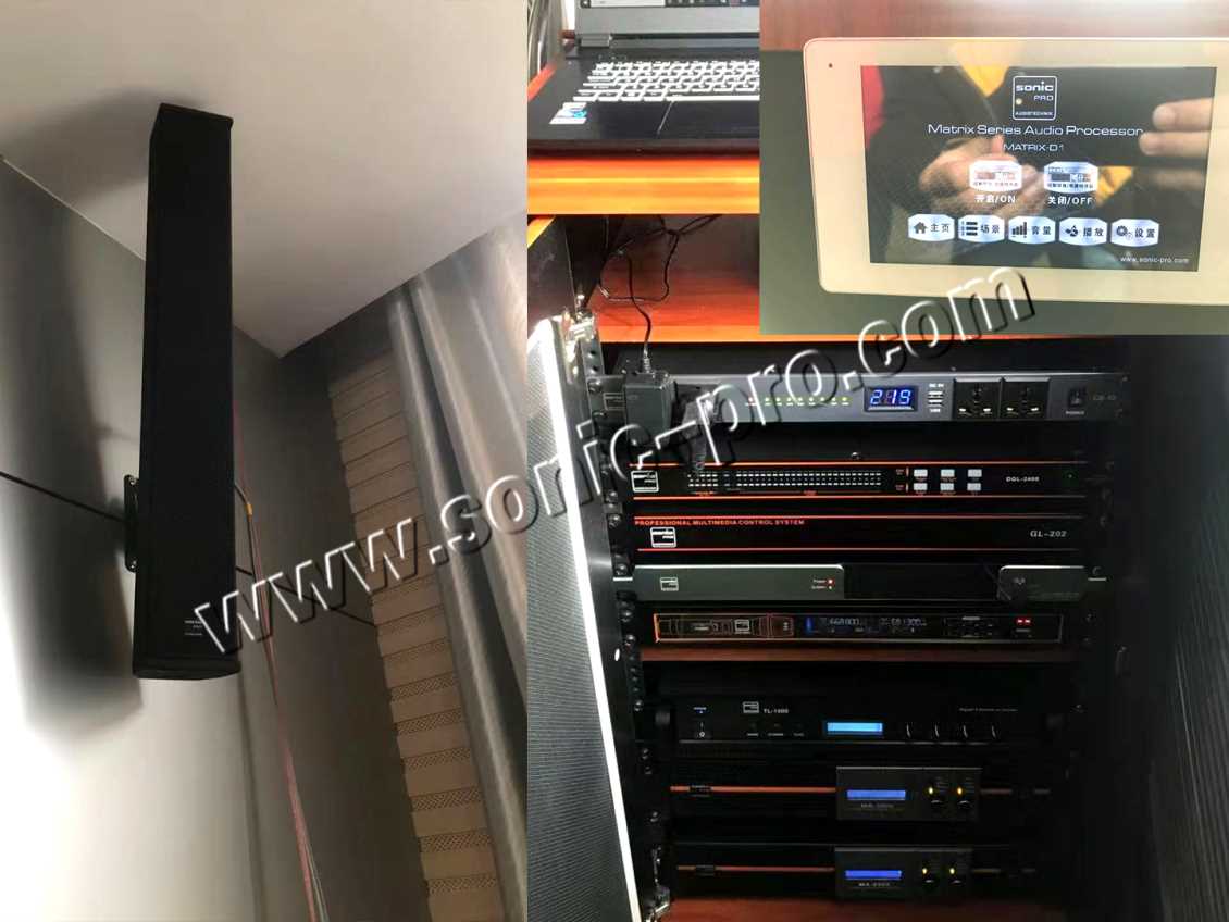 浙江音箱:会议室采用线性音柱进行扩声,高强度桦木夹板,喇叭单元可以和木箱体有良好的共振,使声音更饱满。
