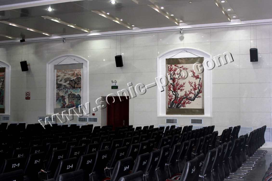 大会议室需要满足会议、演出的要求,所以采用极具技术代表性的TZ系列同轴浙江音箱,主扩声为两只TZ-18同轴全频音箱,保障了全场的大声压级,