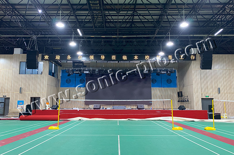 该校体育馆方案设计。体育馆主要用于体育比赛和文艺演出等,考虑到体育馆作为一个较为人多且空旷的场所,甲方要求浙江会议系统需要做到声音清晰、柔和、音质优良、观众席上有足够的响度,声音应覆盖整个观众席和表演场地,使声场均匀,系统有足够的稳定度。