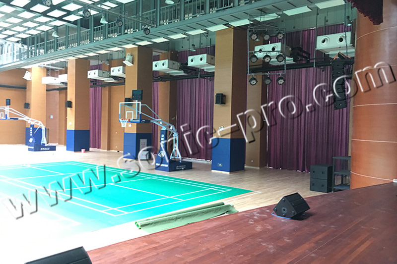 篮球馆演出系统定位于先进的专业扩声系统,用于会议、演讲、演出活动等,该系统要求具有先进性、功能完善性、可靠性。
