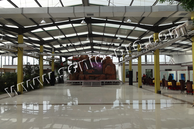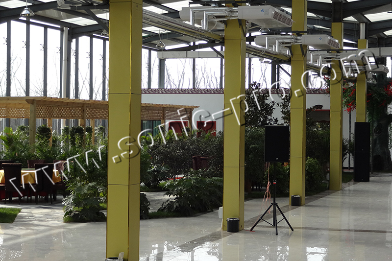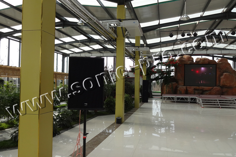 酒店宴会厅使用的音响设备由SONIC PRO音响倾力为其量身打造,此次音响系统的搭建采用了4只双15寸音箱TB215、2只单15寸音箱TB15,TB系列音箱忠实还原语音以及音乐扩声,其具有丰富的吊挂点位,且在音箱底部设计一个35mm的支架孔座,箱体由15mm高密度板构成,表面?为耐磨的黑色点纹防水环保水性油漆,后接线板两个并联的NL4MP芯插座方便连接,黑色内覆透声声学海绵结合穿孔铁网保护音箱单元,面网固定采用内六角平面螺丝整体美观大方。配上SONIC PRO音响最新开发的定位于娱乐工程、户内外演出全方位应用的浙江功率放大器TD-600、TD-800,大功率,多功能,高质量,音色优美及稳定性于一身的专业功率放大器配合12路浙江调音台MX12C、为整个音响系统提供了高品质的音频控制以及良好的保证。再配备SONIC PRO音响专门为搭配SONIC PRO音箱而专门开发的浙江音频处理器MATRIX306等周边设备,UHF-5000演出级的话筒,为造访该酒店的客人提供了一场听觉盛宴!