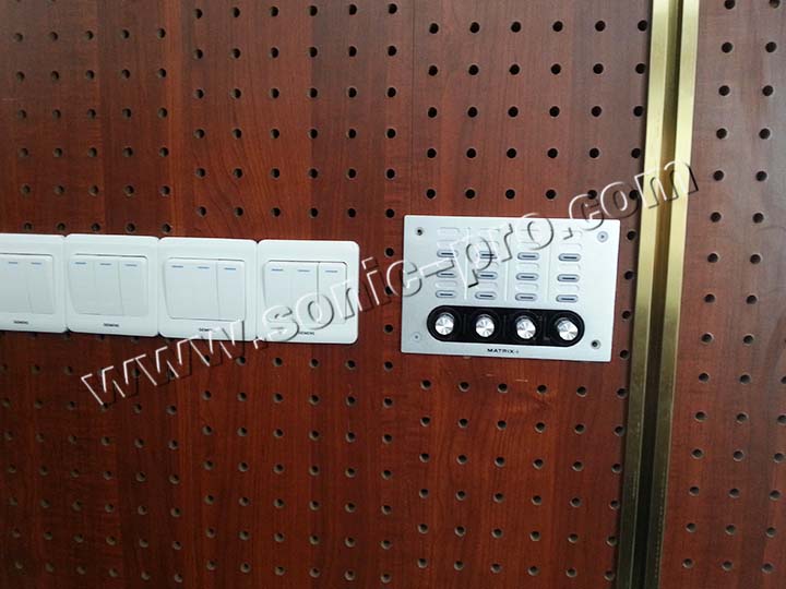 浙江周边设备采用2台音频隔离器(GL-202)、数字音频矩阵处理器(MATRIX808)外接MATRIX-1控制面板,一键式操作。