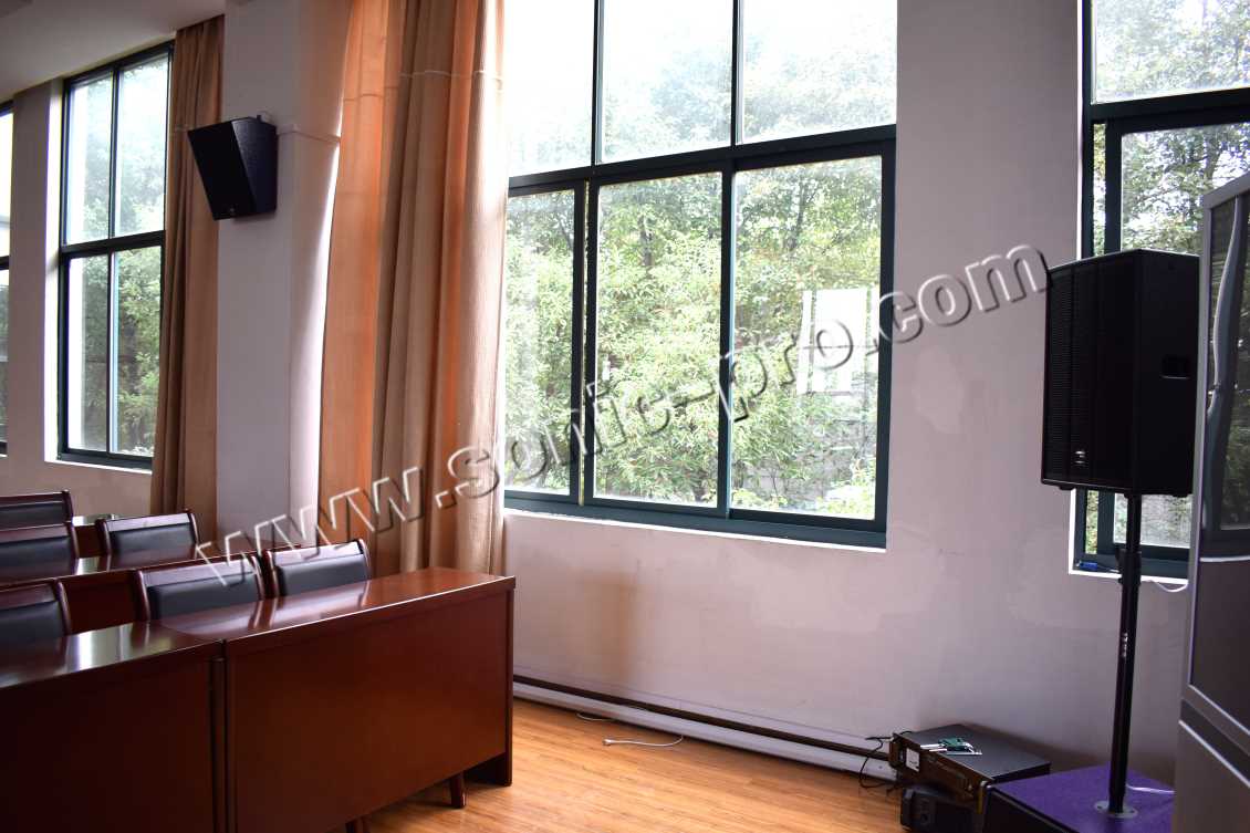 浙江TH-803线性音柱,该音柱采用欧洲原装定制小口径喇叭单元,铝合金开模的精致设计,很好的契合了该会议室特殊的安装需求。