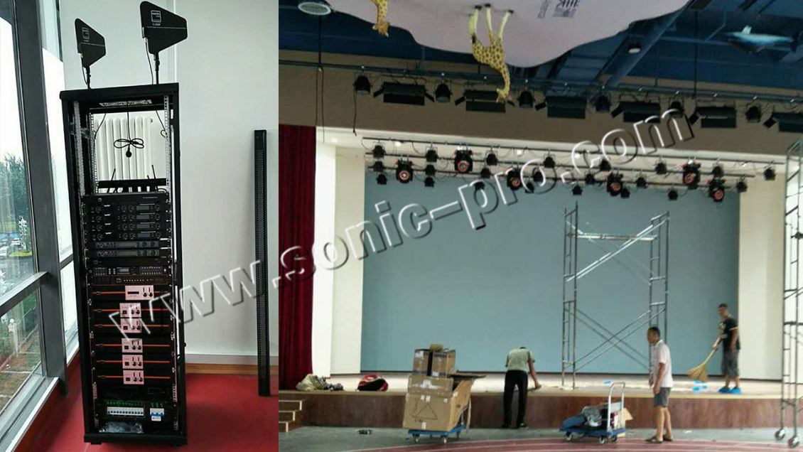蓝天高展国际幼儿园多功能厅主要担负着园里运动会、会议、演出和一些小型活动等使用功能,因此需要满足人声扩声及音乐扩声的需求,同时由于使用的场所主要使用人群为幼儿,