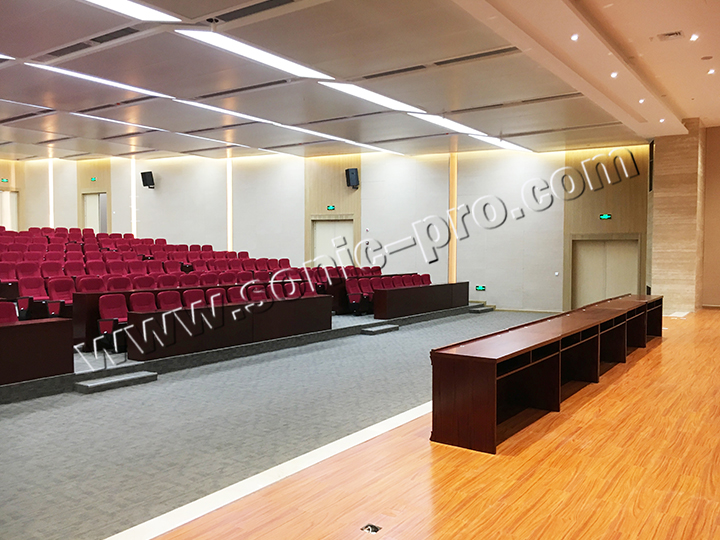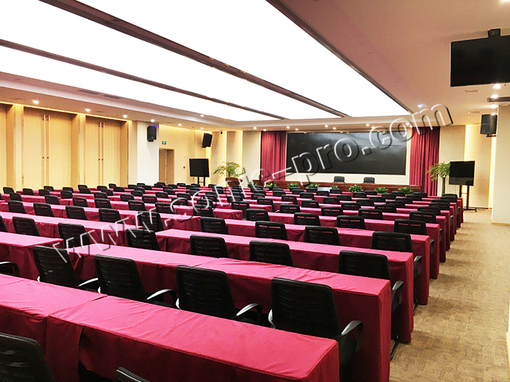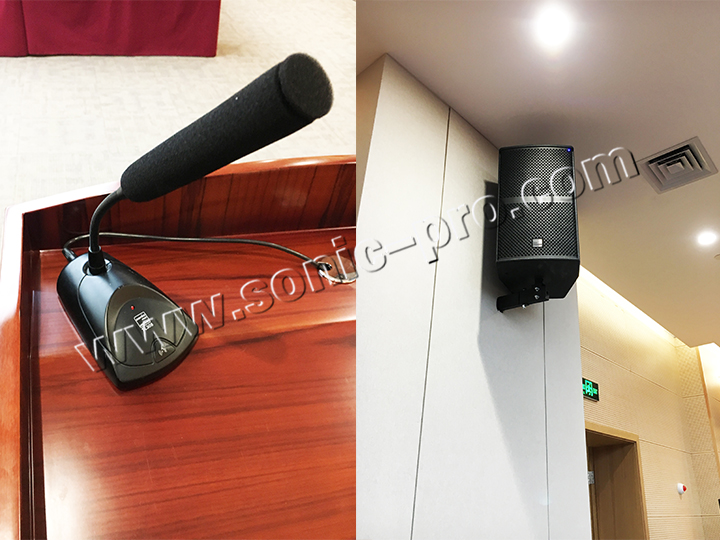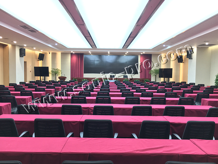 此次SONIC PRO音响应用于重庆农业银行的场所有两处,分别为3楼的数字化会议室和大型多功能厅。会议室可同时满足200多人进行会议,需要满足日常会议扩声需求,因此对音箱的声压级和重放的语言清晰度要求比较严格;且配有拼接大屏,因此应用的音响设备必须要能够与大屏联动使用;而多功能厅需要兼顾会议,报告,演出等多功能使用,是一个可容纳680人的大厅,相较会议室对音箱的声压级要求更高,声音需能够清晰传达到报告厅的每个角落。