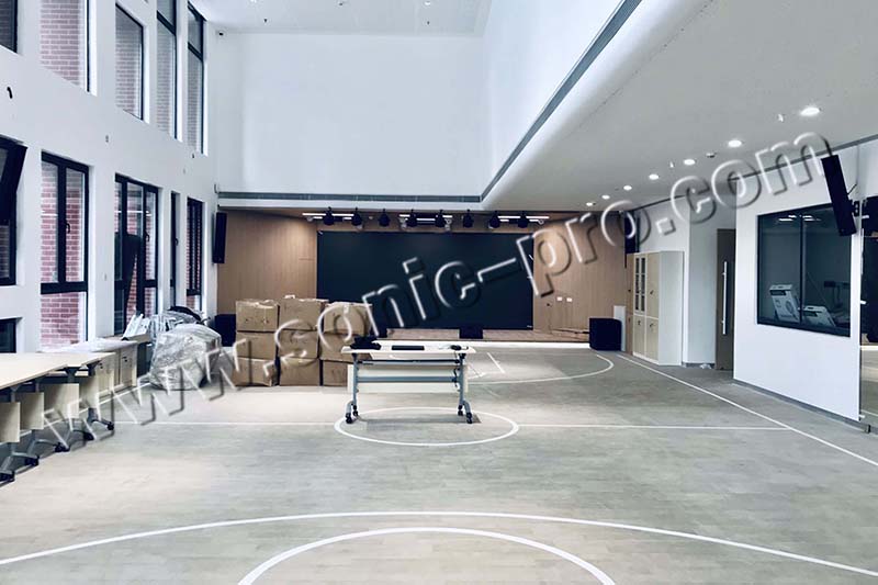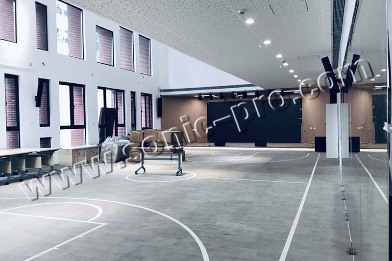 活动室,需要兼顾各类会议及文娱活动,我们采用立体声扩声方式,能够完整的覆盖整个观众区。听众区内声压分布均匀,系统具有足够的反馈前扩声增益。