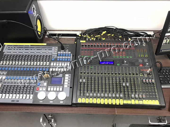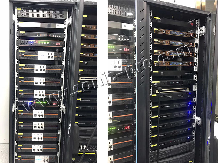 浙江调音台GL-32,加上数字音频矩阵处理器MATRIX808,以及数字前级处理器KV-8800,音频隔离器GL-202,均衡器AC03,电源时序器CS-16。