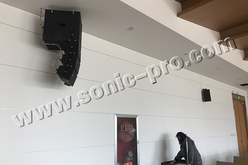 音响设备是报告厅的一个重要部分。通过对报告厅的布局环境分析,对音响设备进行合理的布置与连接,并安装以下的音响设备,使观众能感受到声源的真实存在,达到高保真重放的扩声要求。