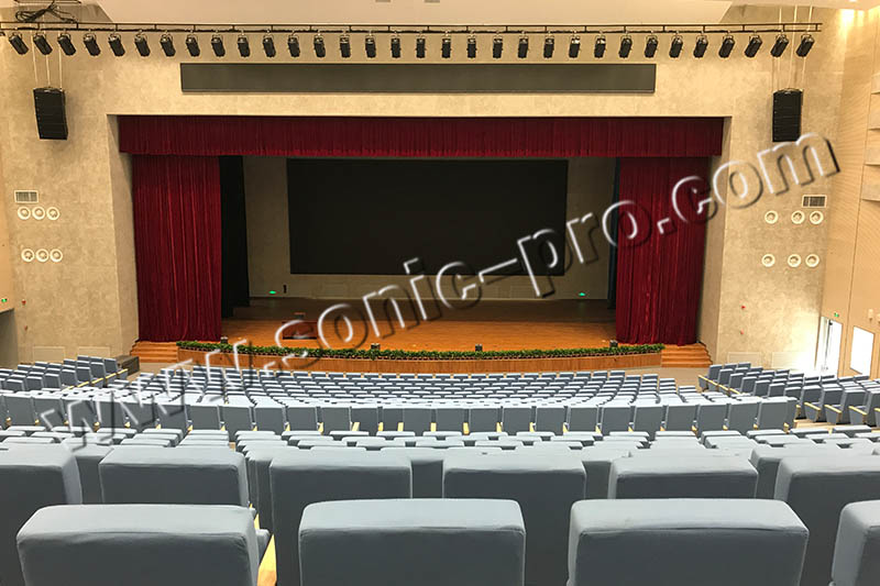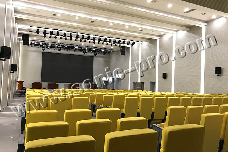 千人多功能厅,音箱同样采用SONIC PRO品牌中的LA系列,再搭配SONIC PRO的FA系列和SN系列功放,以及DSP-1616数字音频处理器、 DW-10时序电源 周边设备,对整个音响系统进行调控操作。