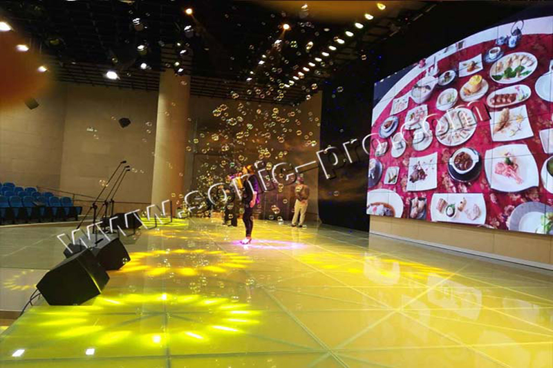 此次福建沙县广播电视台演播厅扩声系统全部采用SONIC PRO音响产品。扩声音箱采用TZ同轴系列音箱(TZ-10、TZ-12、TZ-18)加上SUB系列超低音音箱(SUB-218),