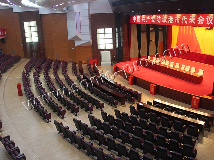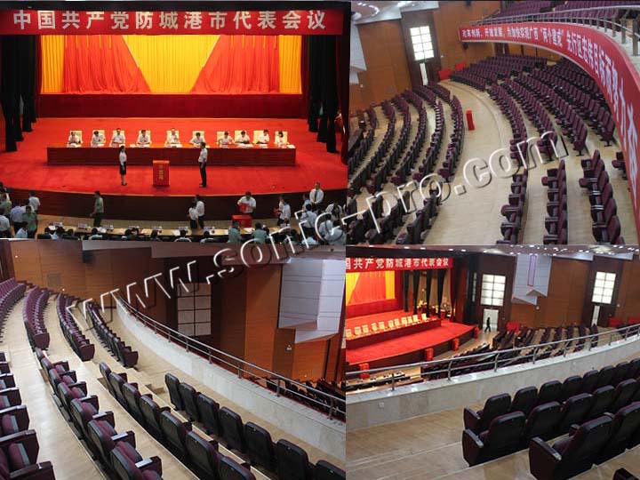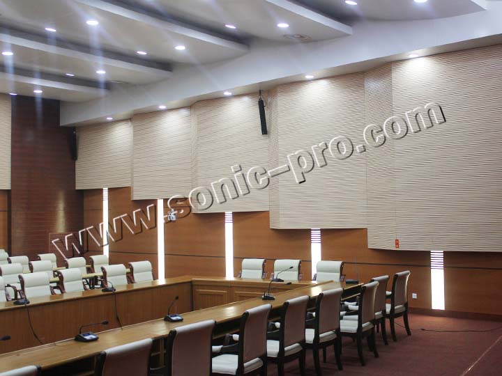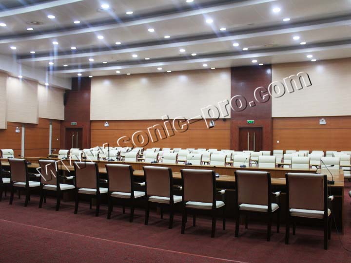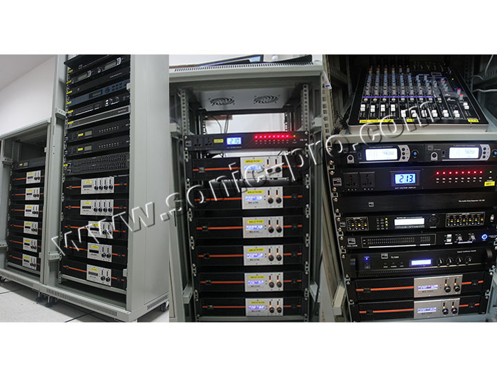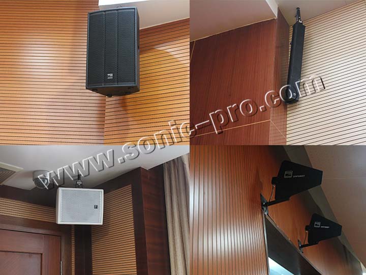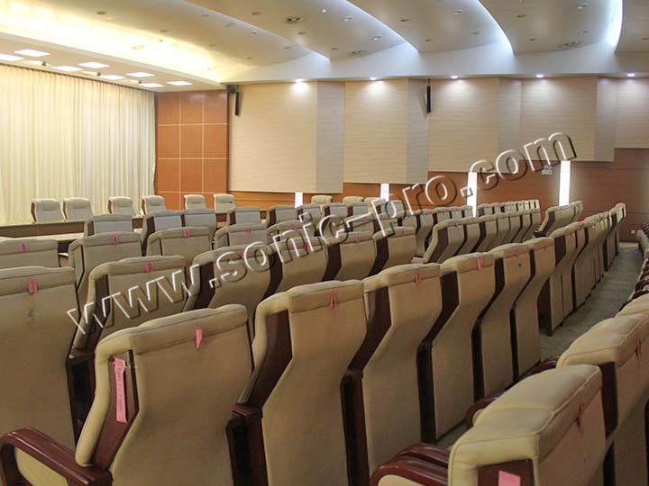 大礼堂部分:主扩采用12只LA系列单10寸线阵音箱(LA-110W),线阵次低音采用2只单15寸吊挂低音音箱(LA-115W),LA系列线阵音箱单元全部采用进口定制钕磁单元,具有高质量单元配置,专利线性号角,音质优美,投射精确、体积小、重量轻等特点。拉声像音箱采用2只具有独特SONIC-PRO烙印的18寸同轴全频音箱(TZ-18W),同轴扬声器单元内部高音采用进口音圈,结合最新复合材质高音膜片,配合铝合金拉丝号角带来出色的音质表现与听觉享受,声音自然、清透,更具表现力。落地低音采用2只双十八寸音箱(SUB-218),提供充足动态保障。主扩声音箱、拉声像、超低均采用隐藏式安装。辅助音箱和舞台返听音箱采用8只K-12W。功放全部采用具有国家专利设计的MA系列(MA-2700、MA-210K、MA-4500、MA-215K),该系列功放放大电路在先进、成熟的AB类电路基础之上做了全面的优化以及线路的调整,采用顶级功率放大管,进一部优化声音,持续提供澎湃的驱动力;同时在后面板增加了6路220V电源时序供电插座,支持远程控制开关机,使其在大中小型扩声场合时不需要匹配电源时序器。处理部分采用24路数字