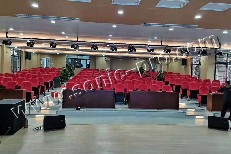多功能厅具有面积较大,需要实现远距离,大声压扩声的特点