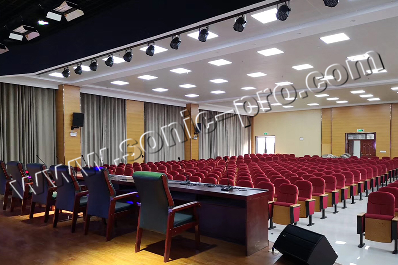 该报告厅是沙河路小学的一个综合性报告厅,也是平时召开各种类型的报告演讲、会议以及文艺表演的基本场所,其音响系统功能要求以满足歌舞文艺演出、会议、学术报告、视频播放等多功能使用要求而设计的。