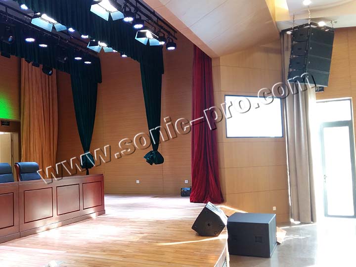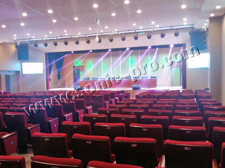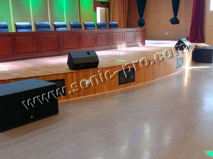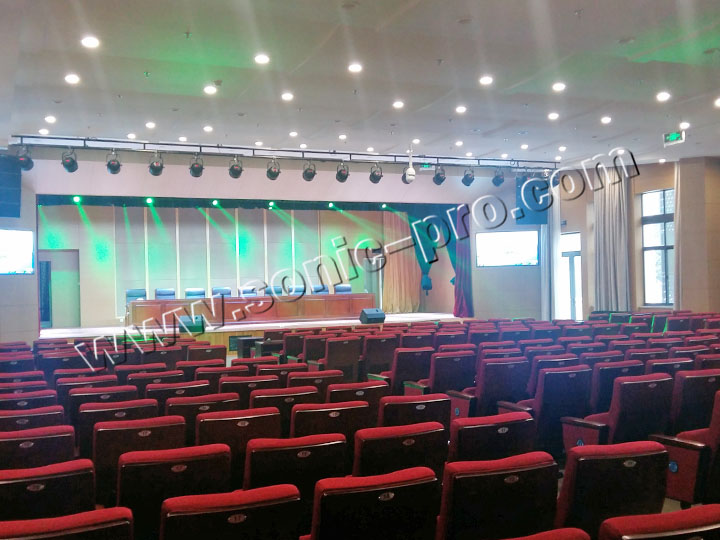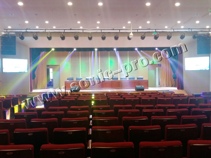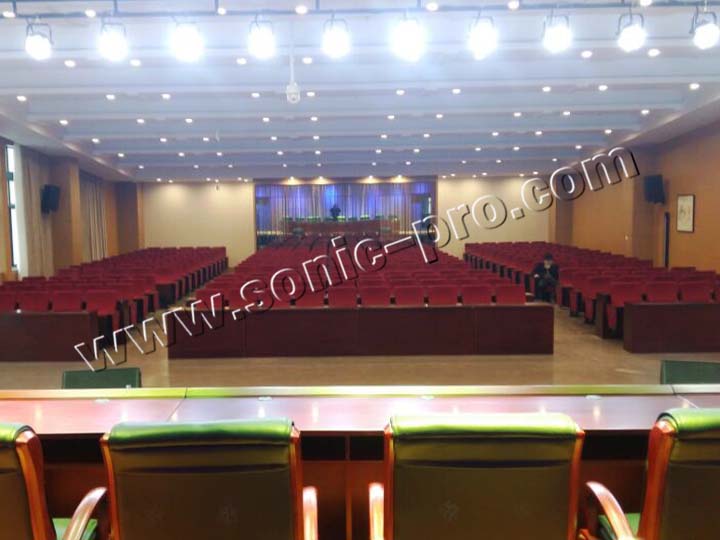 此次体育训练中心多功能厅专业音响扩声系统全部采用SONIC PRO音响产品,左右主扩声分别采用双10寸线性阵列
