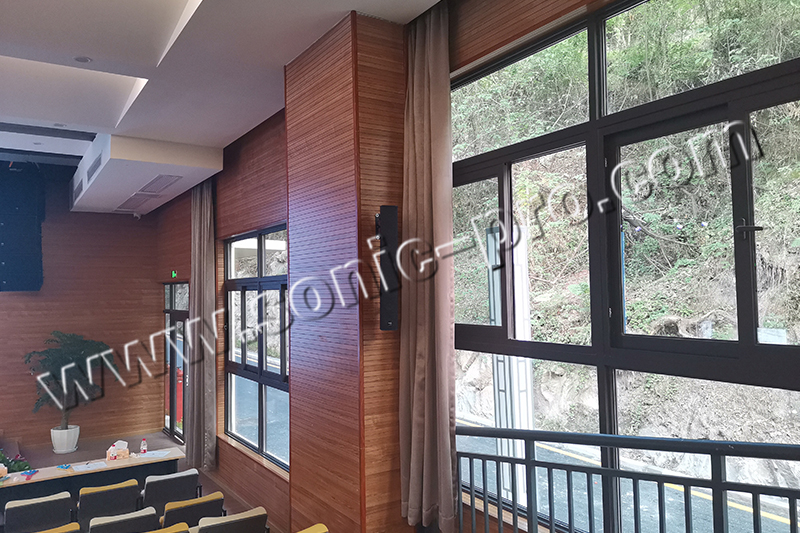 TH系列线性阵列音柱:具有小箱体,大功率的特点,可以提供中音通透,高音华丽的高品质扩声,尤其适用在会议人声。音箱采用会议室四角安装的方式,可以保证声压级均匀合理。