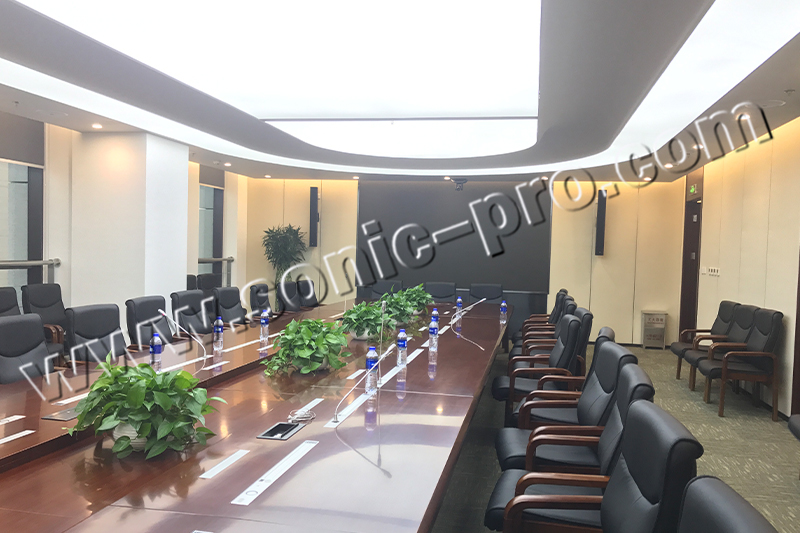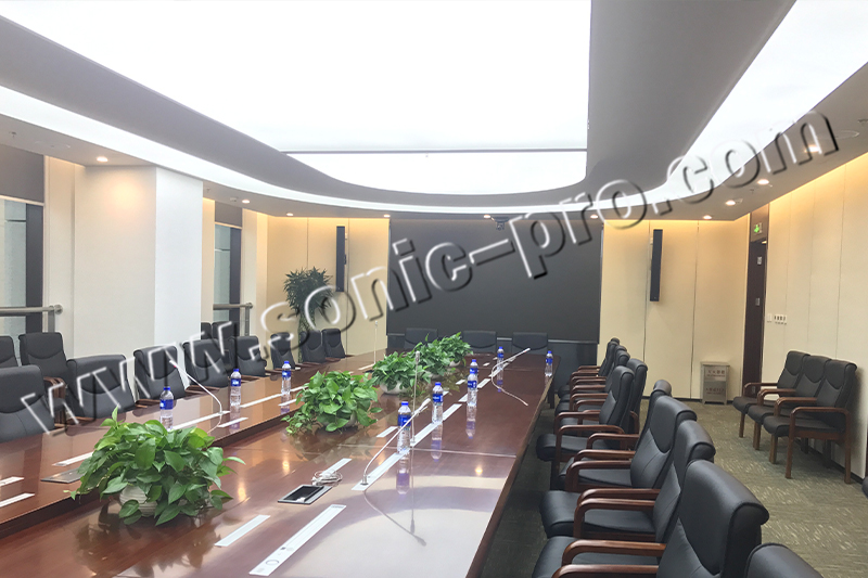 会议室音响系统以满足报告、会议的同时应适当考虑演讲、音乐等多用途性。在偏长混响时间设置的情况下,小功率声源(如话剧,会议)需由电声系统提高直达声能,以保证足够的声压级和清晰度。通过合理设计使扩声与