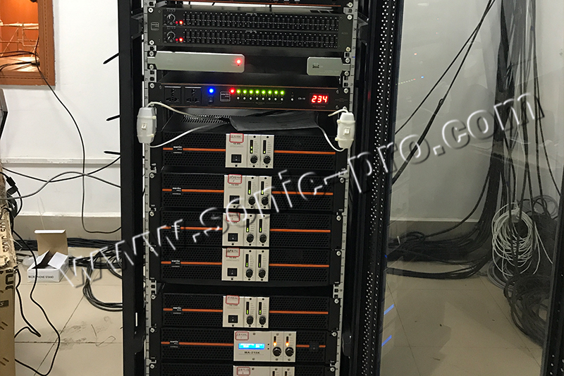 我们还配置了MA系列和TD系列功放,MX24C调音台、MATRIX808数字浙江音频处理器、AC08效果器、AC03均衡器、GL-202音频隔离器、CS-10电源时序器、DGL-2408反馈抑制器。